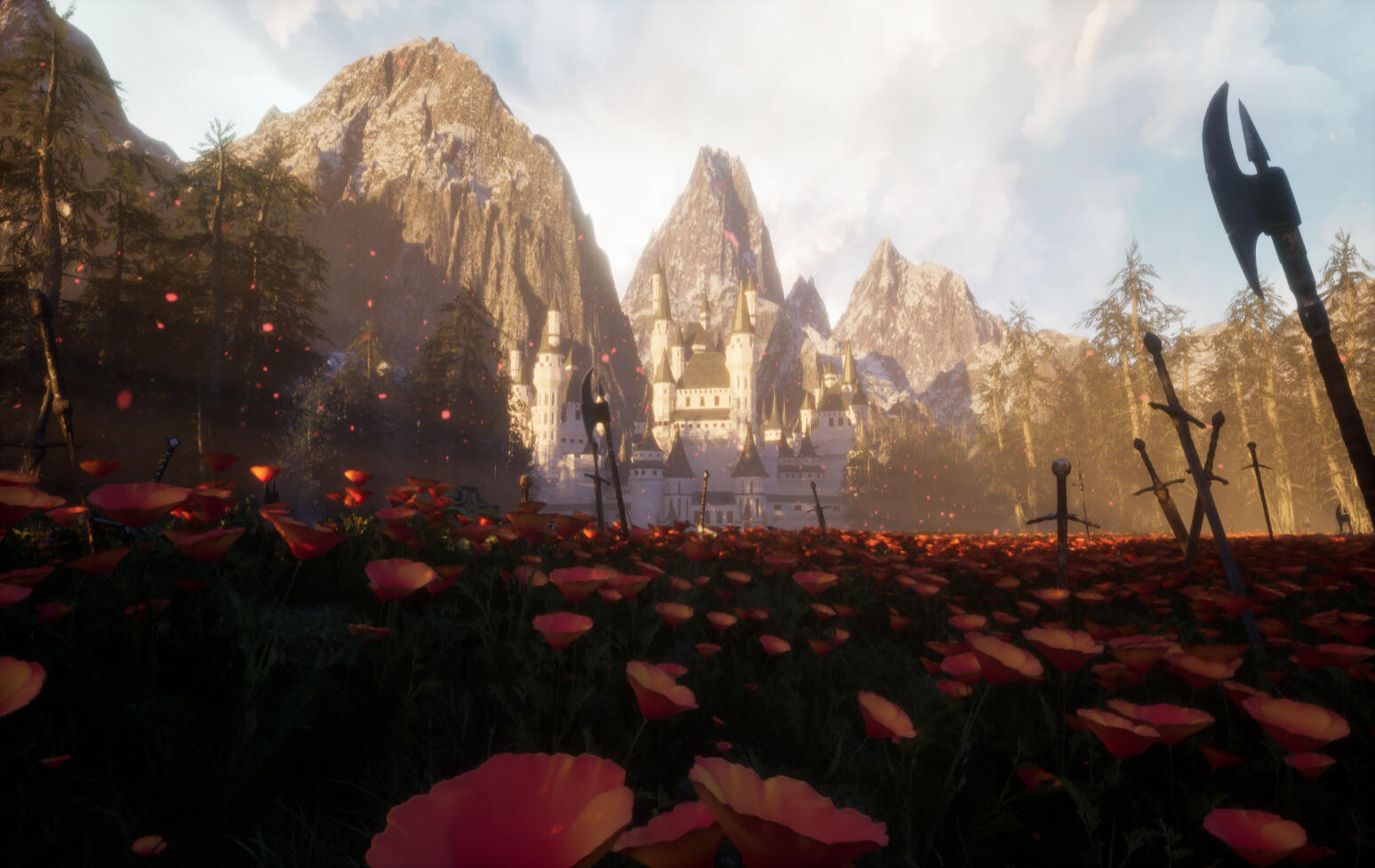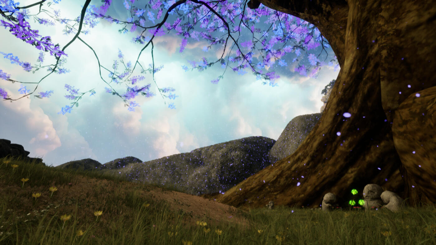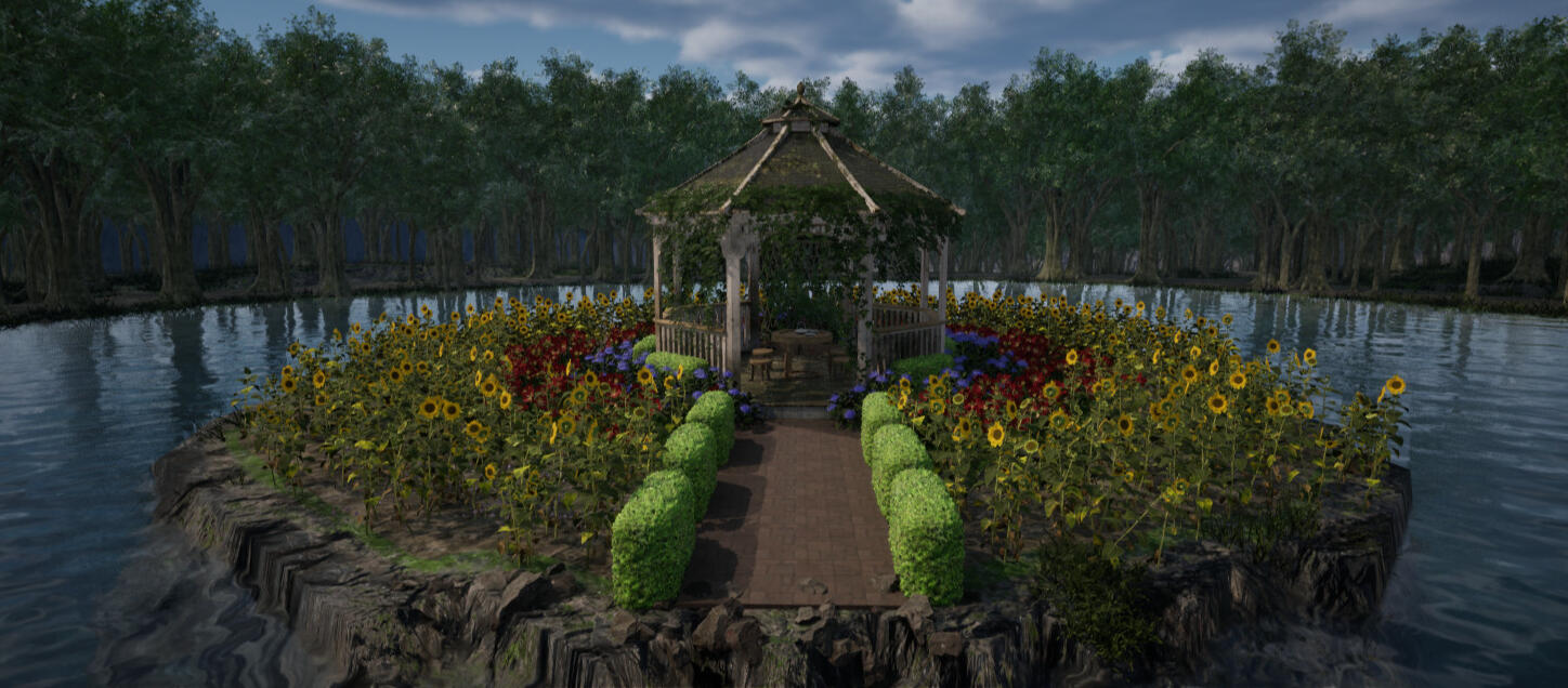 I created a medieval fantasy scene for an assignment for a Senior Portfolio class.It is about a beloved general of a nation getting thrown ten years into the future in the middle of battle and going on a journey to return home. He finds a memorial for himself, his people believing he had died during the battle ten years ago. The weapons scattered around the field are dedicated to those lost in that fight, and the fields of the national flower a promise of peace.I used Unreal Engine 5, and assets are sourced from Fab.com, Unreal Marketplace, and Sketchfab.