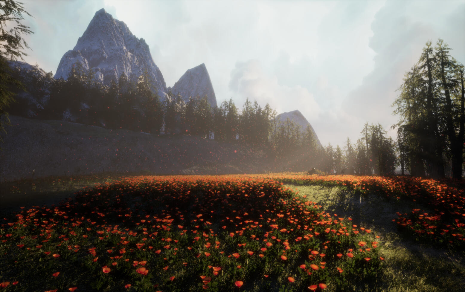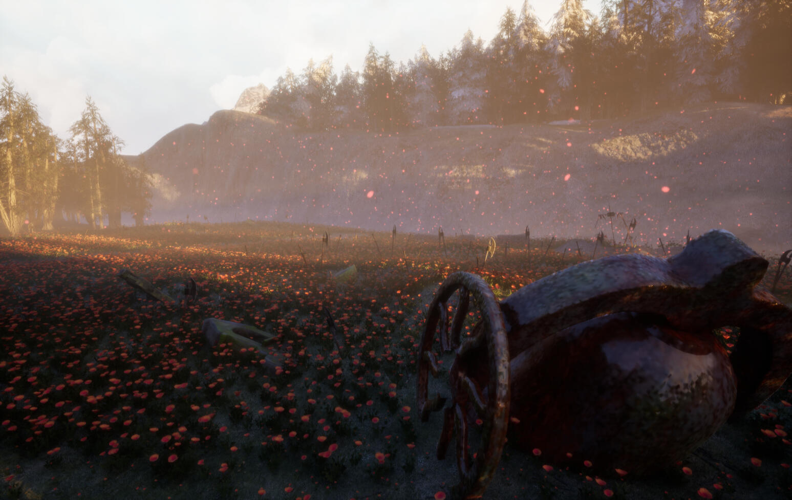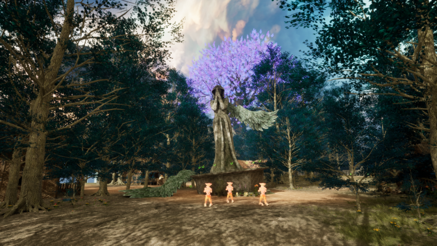 I created a medieval fantasy scene for an assignment for a Senior Portfolio class.It is about a beloved general of a nation getting thrown ten years into the future in the middle of battle and going on a journey to return home. He finds a memorial for himself, his people believing he had died during the battle ten years ago. The weapons scattered around the field are dedicated to those lost in that fight, and the fields of the national flower a promise of peace.I used Unreal Engine 5, and assets are sourced from Fab.com, Unreal Marketplace, and Sketchfab.