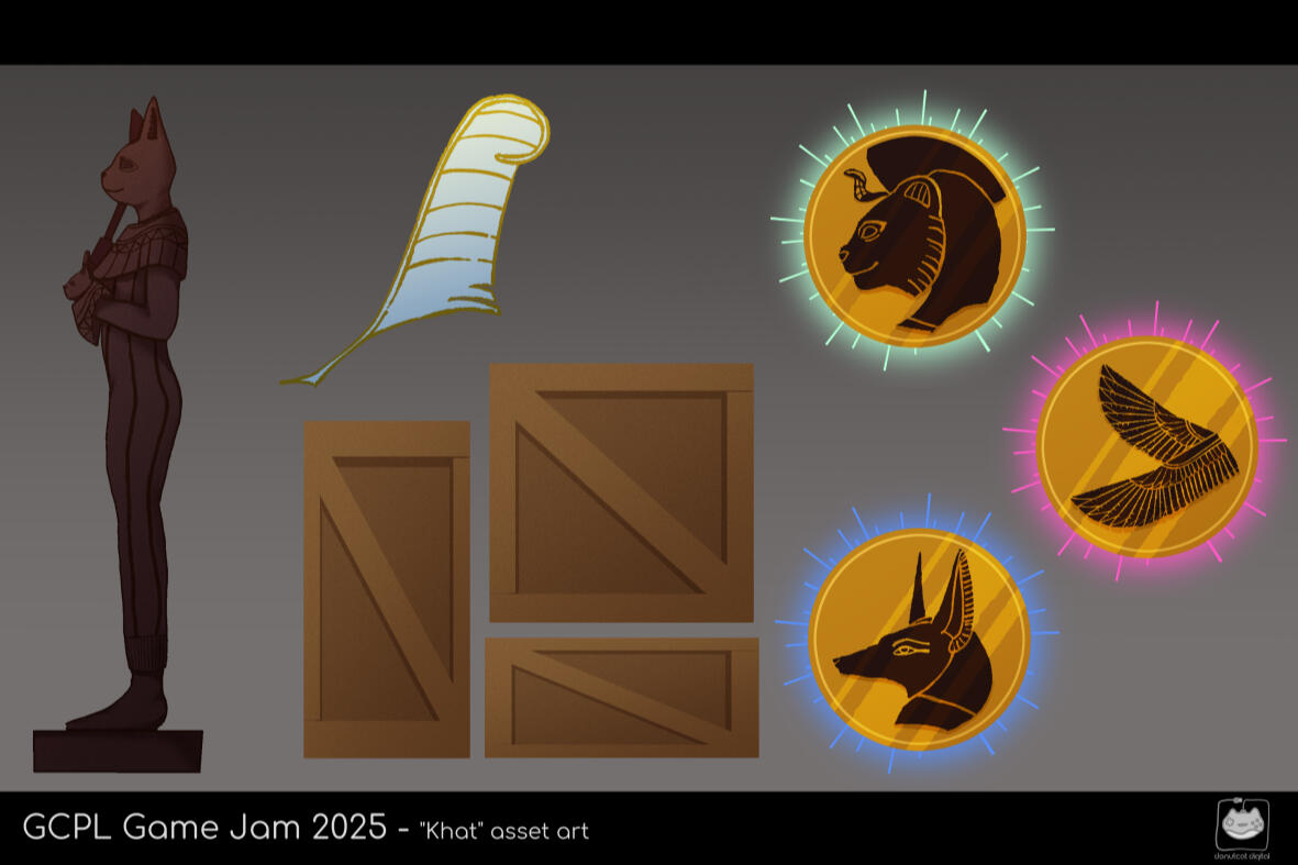 "Khat" is an ancient Egyptian mythology themed 2D roguelike platformer game created for the 2025 Gwinnett County Public Library Game Jam.As one of the prop artists on my team, I created background assets as well as enemy animations.
