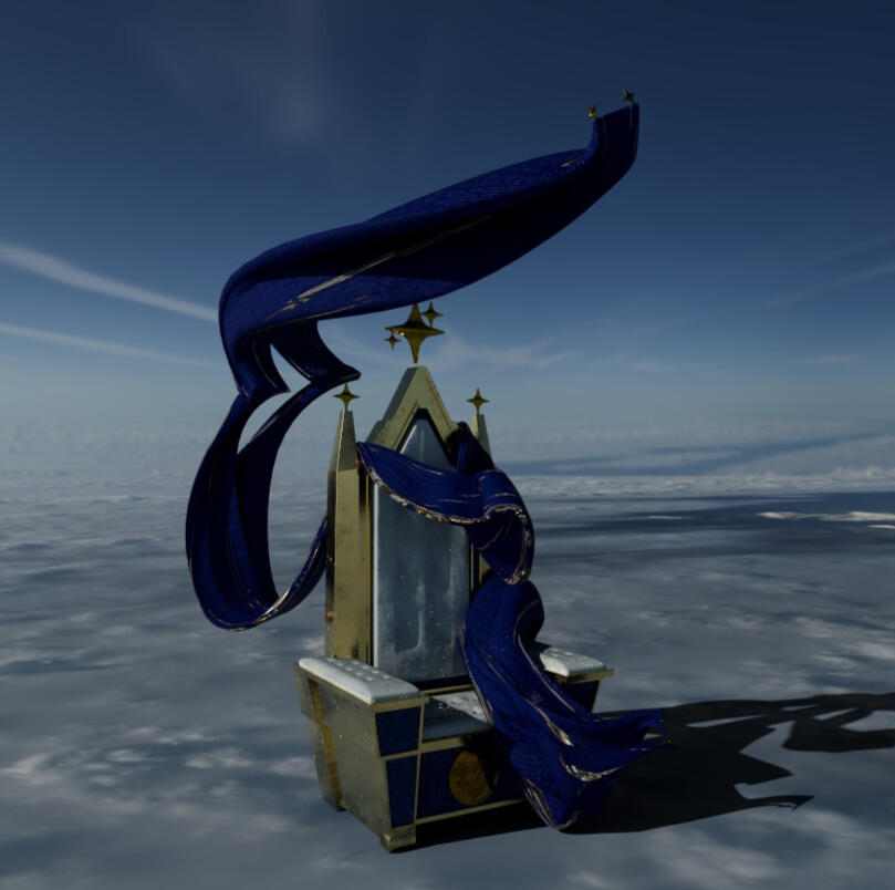 I chose to create a starry themed throne, regal in royal blue and gold, with a scarf whirling around it in the wind.Maya, Unreal Engine 5, Substance 3D Painter